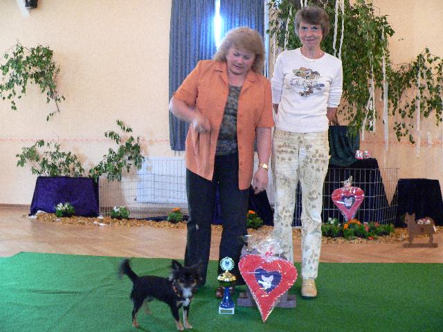 Chihuahua “Bonny Sue von Taischan” genannt “Speedy Pokita Mexican Girl Bonita” mit Margrit Roloff und der Zuchtrichterin Frau Biala |