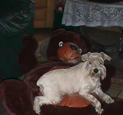 Multi Champion - unter anderem ist sie der 1. weiße Zwergschnauzer in der Welt, der das CACIB und den Titel Internationaler Schönheitschampion anerkannt