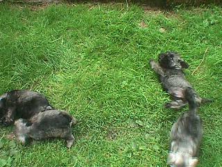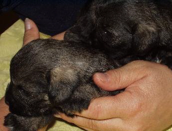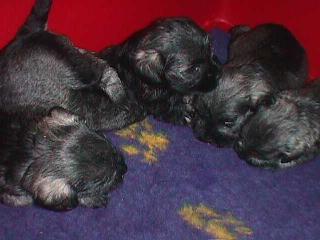 Unsere Zwergschnauzerhündin pfeffersalz “Janita vom Bommerholz” hatte am 25. März 2008 eine Romanze mit “Yustin vom Ahrensfeld”. So bekamen wir am 27. Mai